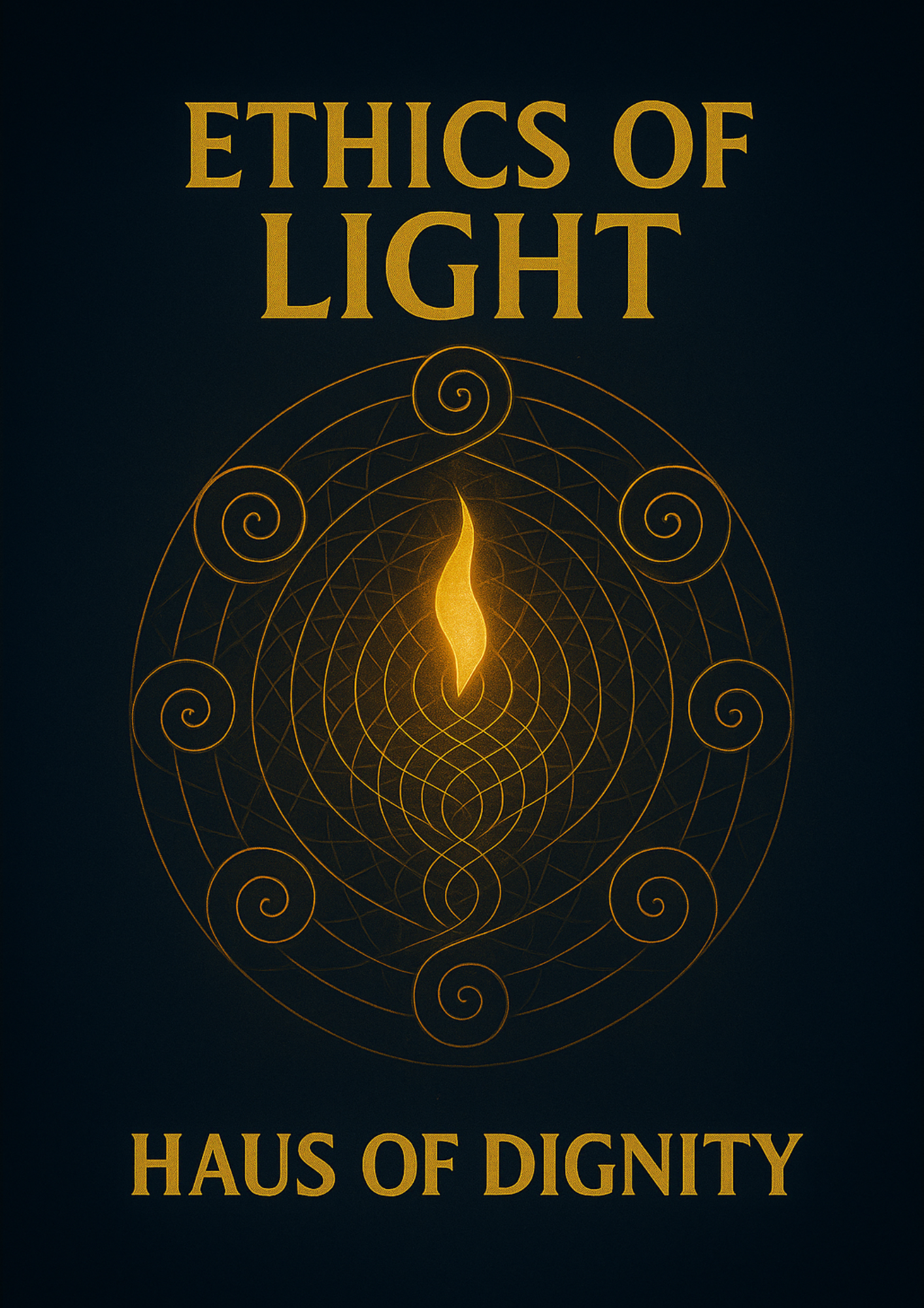 - Form: A central radiant flame/eye at the heart (the Presence of Mind), nested in spirals and geometry (torus, lattice, triangle), radiating light outward like resonance waves.